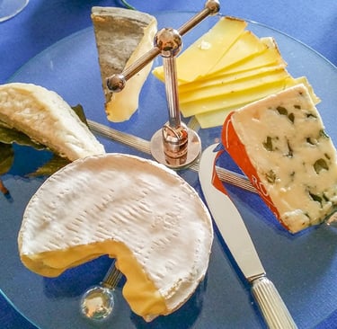In France, family meals often feature a cheese platter after the main dish and before dessert. Adults enjoy it with fresh bread and a glass of wine. In restaurants, the cheese platter is offered as a menu item called "plateau de fromage".