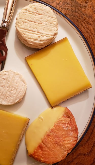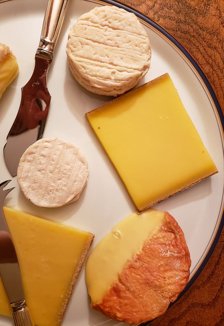 While you are in Europe, it may be tempting to pile your plate. After all you have been reading about all these delicious cheese varieties and can't wait to try them. This would not look good, especially in a restaurant. Cheese isn't meant to be rushed through ; it is meant to be savored. Moreover, it gets harder to notice the individual flavors after 3 or 4 different cheeses. At home, a better way is finish your plate, and then serve yourself again in small portions.