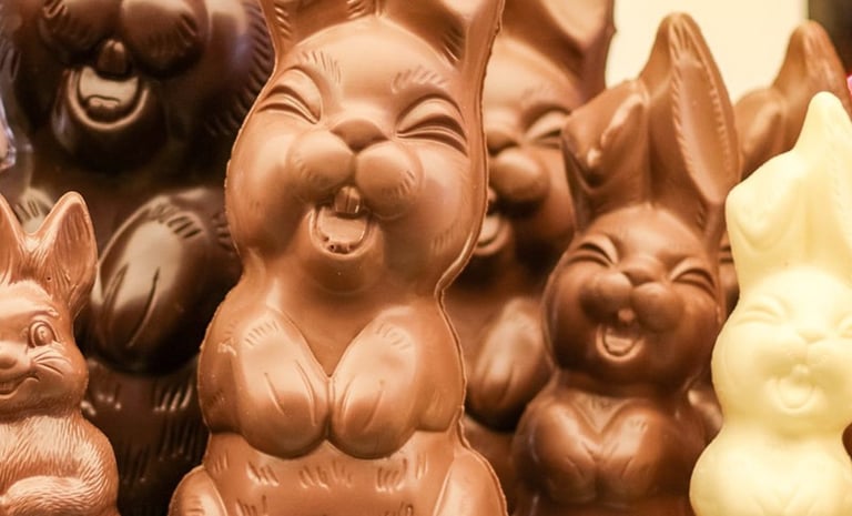 Elaborate chocolate eggs are crafted across Europe during Easter celebrations.